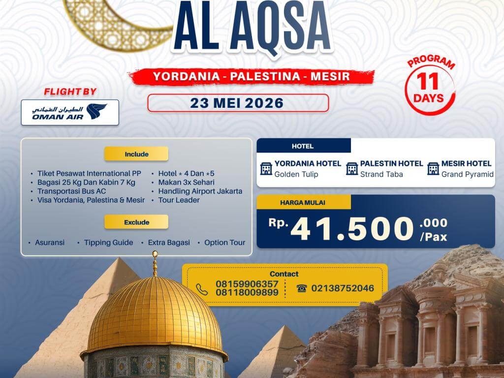 Halal Tour SHolat Idul Adha di Masjidil Aqsa 23 Mei 2026 11D